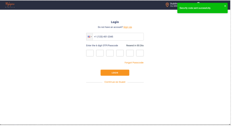 Existing Users: Enter your phone number in the provided field and click the Login button.