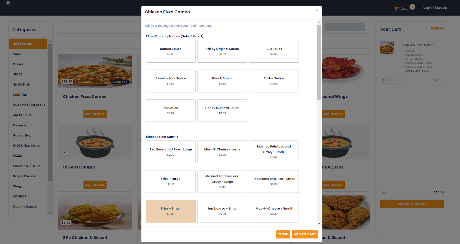 If customization is available, click “Customize” to select preferences (e.g., sauces, sides).