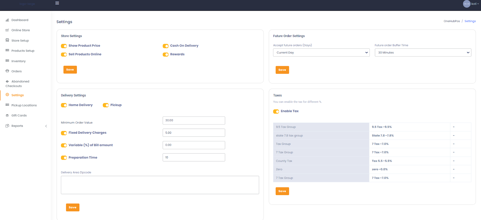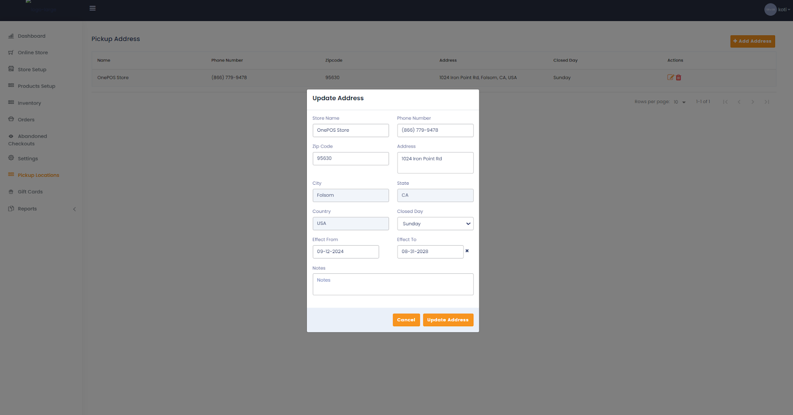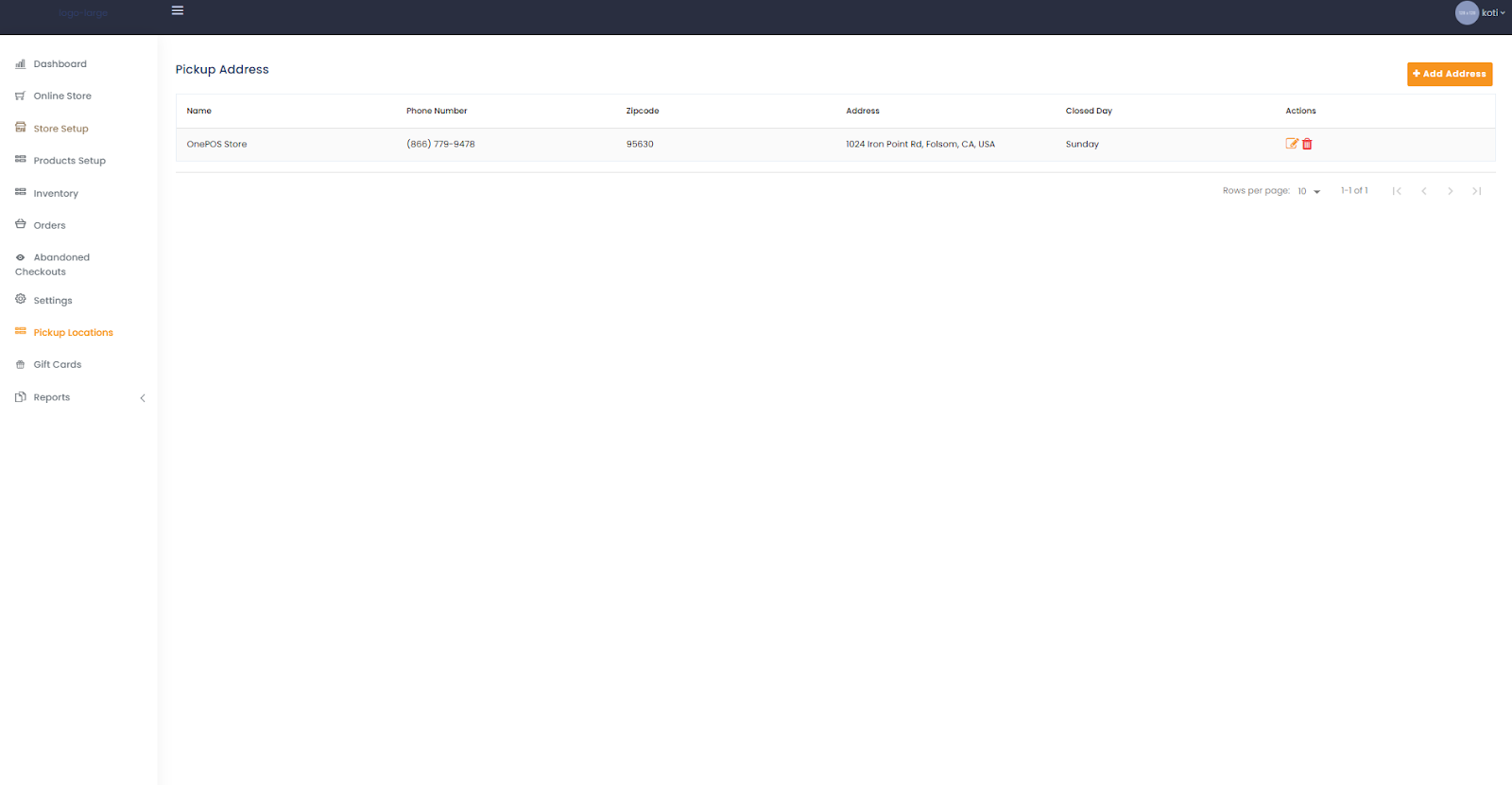 Managing pickup locations in OneHub POS allows businesses to set up, edit, and organize store pickup addresses for their customers. This guide will walk you through the steps to manage pickup addresses effectively.