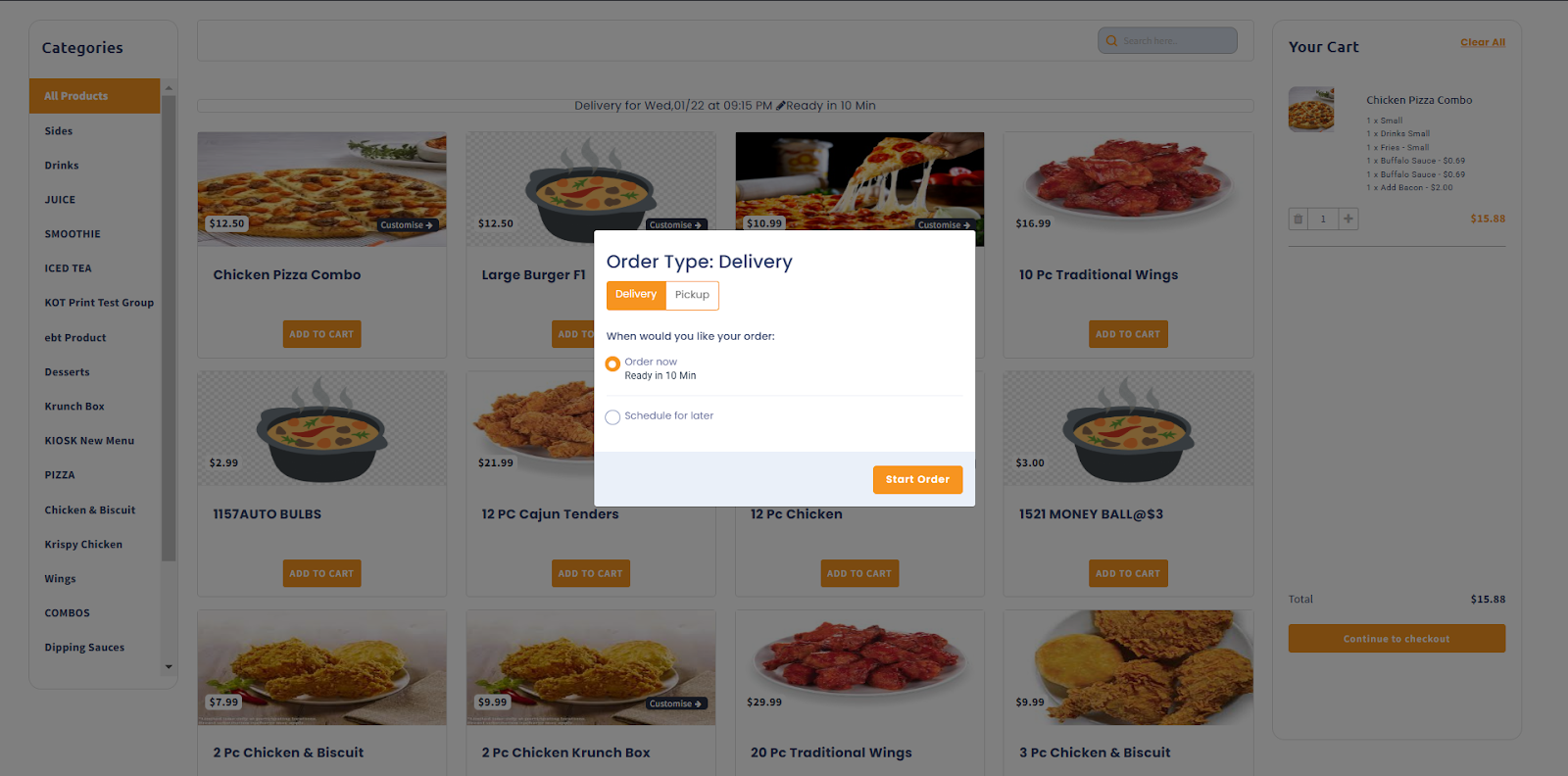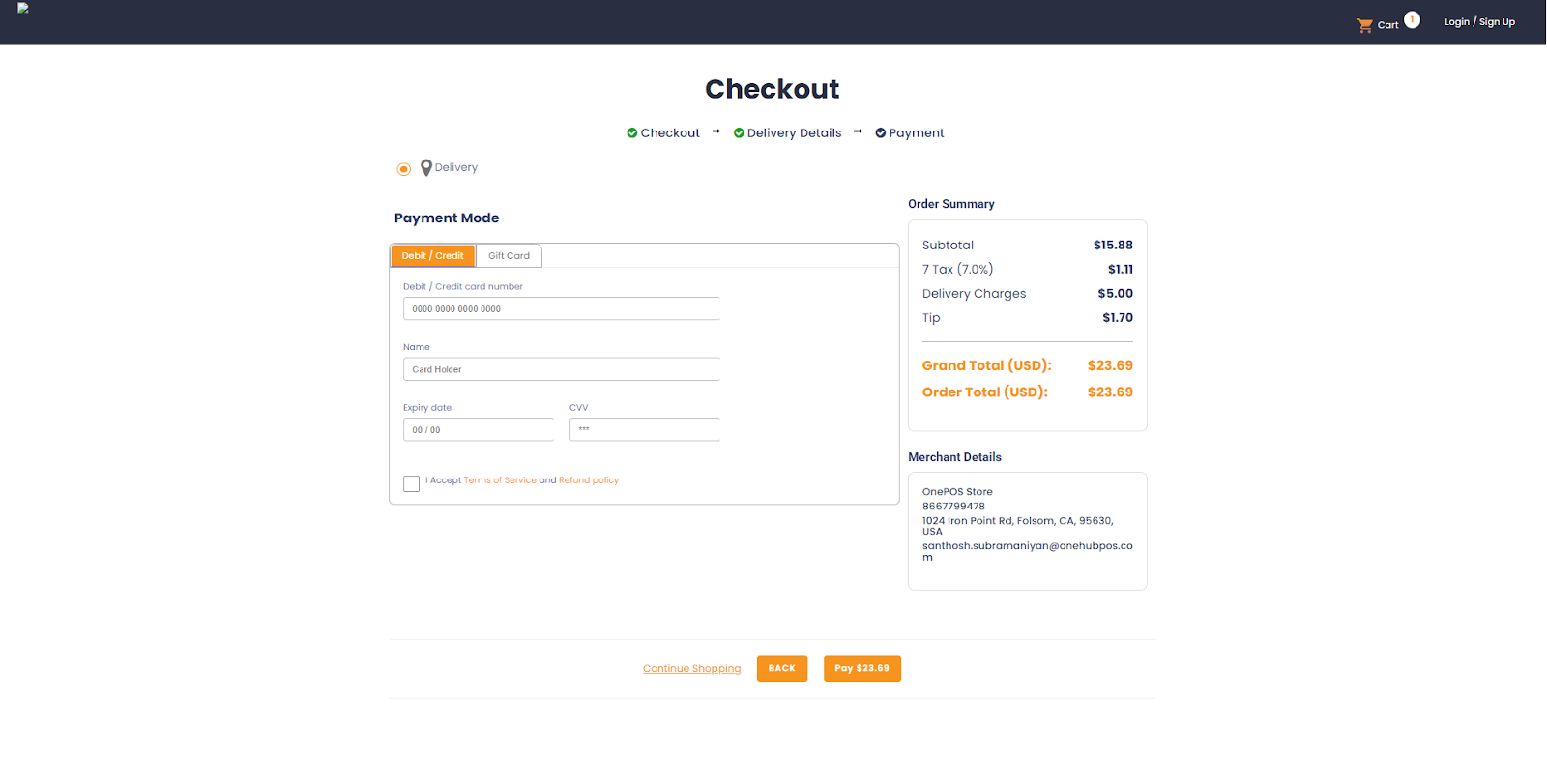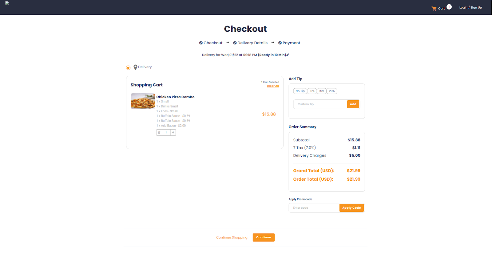 On the checkout page, verify your selected order type (Delivery/Pickup).